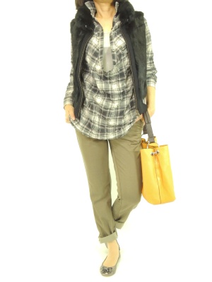 ファーベストをプラスするとカジュアルなチェックシャツも旬の表情に!アクティブ度90%、フェミニン度10%。
