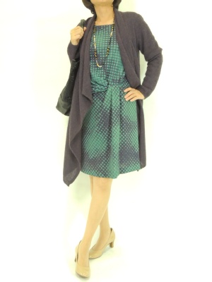 ドレープを効かせたアイテムは楽なの着心地なのに女性らしい印象です!スタイリッシュ度60%、エレガンス度40%。