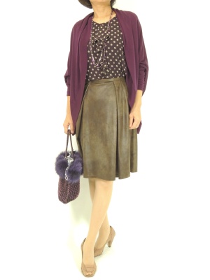 ワイン色のようなパープルはブラウンに合わせると上品で優しい印象になります!フェミニン度70%、エレガンス度30%。