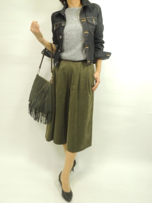 タックの入ったガウチョパンツはトップスをコンパクトにまめるとスッキリバランスが取れますね!フェミニン度80%、スタイリッシュ度20%。