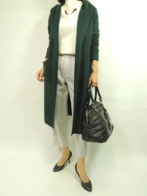 ロングカーディガン。インナーを薄手にしてパンツスタイル合わせればことっひ注目のコーディネートです!スタイリッシュ度90%、エレガンス度10%。