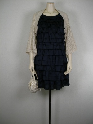 ティアードワンピースもネイビーなら、若い子と同じにならない。大人かわいいパーティースタイルです!エレガンス度80%、フェミニン度20%。