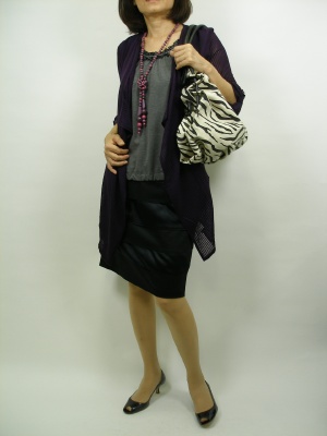 今の時期、とても便利な薄手のカーデ。深いパープルなら秋らしさ満点です!スタイリッシュ度80%、エレガンス度20%。