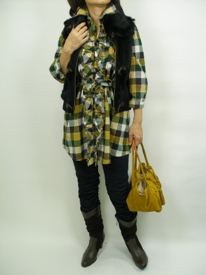 おなじみ、キャサリンハーネルのシャツチュニックをファーベストでアレンジ!アクティブ度90%、スタイリッシュ度10%。