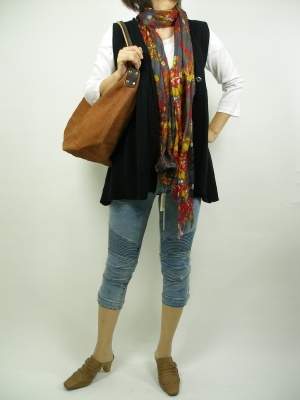 デイリーなカジュアルがストール一つでガラリと変わる。いつもは選ばない色や柄ストールから取り入れるのもアリですよ!アクティブ度100%。
