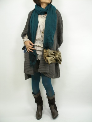 ボリュームカーデには、スキニーもOKですが、こんなショートパンツもいまの気分。ボトムがすっきりしているので上半身はとことんボリューミーに!スタイリッシュ度70%、フェミニン度30%。