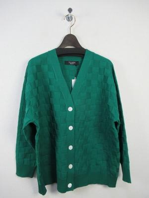 市松模様風のデザインニットカーデ 手洗い可能