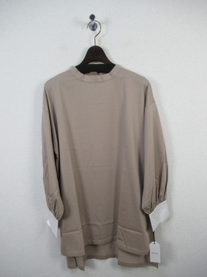 チュニック丈 裾前後差有り ドロップショルダー パフスリーブ カフス異素材 後ろボタン有り 手洗い可能