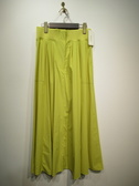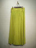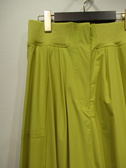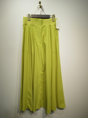 タックスカート、マキシ丈、ウェストは幅広リブのゴム、前ファスナー、両脇ポケットあり、手洗い可、裏地なし