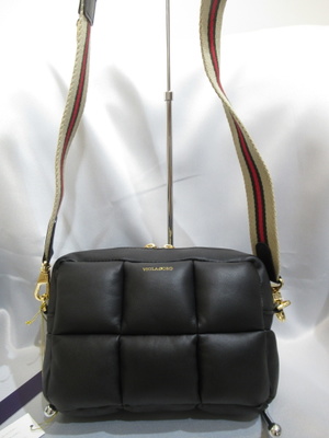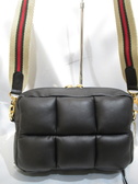スクエアデザイン牛革のキルティング 天ファスナー ショルダーベルト(取り外し可能)