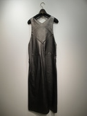 ガンメタよりのシルバー色で 光沢のある合皮生地使用 サスペンダーデザインのジャンバースカート 脇にポケットとシルバーのボタンがポイントのデザイン ヒップのところは飾りポケット 肩ベルトは調整できます