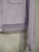 ストライプ柄の短丈シャツ、左胸にポケットあり(生地置き換えでポケットにみボーダー)、裾は同色のオーガンジーでレイヤード風に、手洗い可能