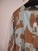 ミントグリーン系とライトブラウンのツートン柄 ラグラン切り替えでベルスリーブ(袖口にかけて広がる。後ろボタン有り (タック入り)手洗い可能