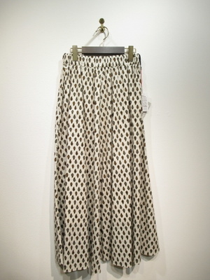 ウエストギャザーゴム 小紋柄のギャザースカート 裏地付き 手洗い可能