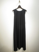 ノースリーブのロングワンピース 裏地無し 裾にかけてAライン 脇ポケット ウエストに飾りベルト(後ろで)ネック後ろにゴールドのボタン(着脱するとき)手洗い可能