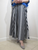 4枚ハギのフレアギャザースカート 白黒のモノトーン(幾何学模様) 裏地はなく インベルは幅広で別素材(カットソー地)の中にゴム入り 手洗い可能