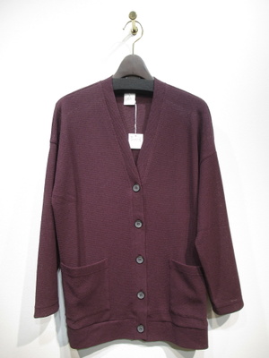長め丈のVカットカーデ ドロップショルダー 大きな貼りポケットフロント左右に 脇裾スリット 生地は伸縮性のある見た目がとても細かいワッフル生地のような凹凸感あり 手洗い可能