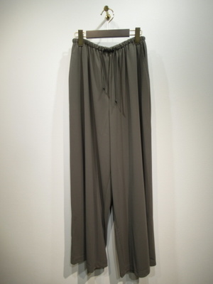 ウエストギャザーゴムと紐調整あり 裏地無しでとろみ感のある生地 脇ポケットあり 裾幅44cmと広めの幅 手洗い可能