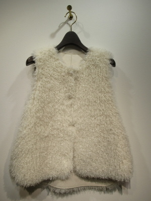 カールフェイクファー、フロント3つ鍵ホック、脇にポケットあり、裾前後あり、裾はラウンド