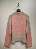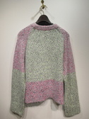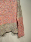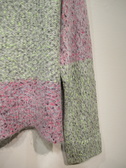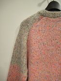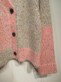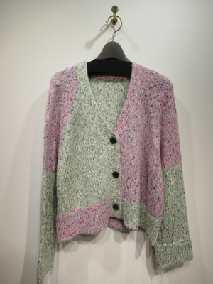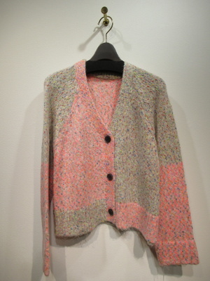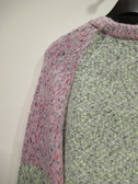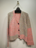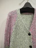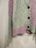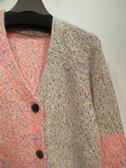 ラグラン袖のVネックカーデ 大きなボタンが3個 配色ツイード ピンクの方は蛍光色のピンク系が特徴配色はベージュ系ツイード ミントグリーンと色表示した方はパープル系の配色です 手洗い可能