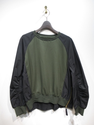ラグラン袖トレーナー風カットソー 身頃と袖は配色 色違い(袖は黒) 左脇のところゴールドのファスナー 前後差あり 手洗い可能