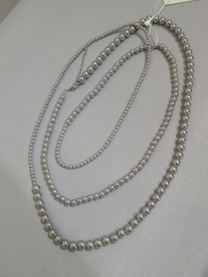 大中小の球のパーツが連なったロングネックレス 2連、3連にしたり工夫次第で色々と使えるネックレス