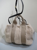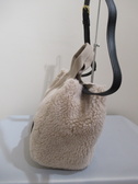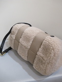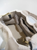 ボアのトートバッグ、ショルダーベルト(取り外し可能)は黒の牛革、中は内ポケットあり、内側のポケット取り外し可能