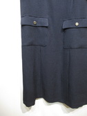 ジャンパースカートワンピース、後ろファスナー、裏地付き、フロントにフラップポケットあり(ボタン付き)、手洗い可能