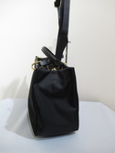 横長トート型バッグ、天ファスナー、持ちて牛革、ショルダーベルト付き(グログランテープ)で取り外し可能