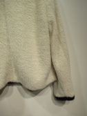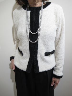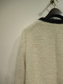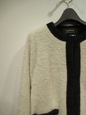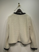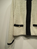シャギー生地のシャネルタイプジャケット トリミングは黒 フロントにカギホック3つ 裏地無し 手洗い可能