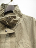 スタンドカラー 裏地無し 薄手のコート フロントはファスナーとホック有り 袖口リブゴム 裾はドロスト 手洗い可能