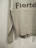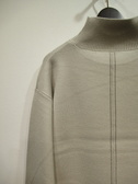 ドロップショルダー ハイネックのロゴ入りニット 後ろ下がり 後ろの中央裾スリット 手洗い可能