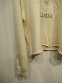 クルーネックのニット ドロップショルダー 裾はくるっと丸まってます リボンロゴ入り (ラメ入り)手洗い可能