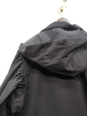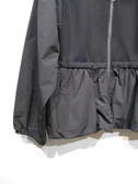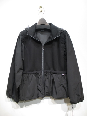 フード襟のペプラムデザインブルゾン 身頃はカットソー生地 ペプラムとフード 袖はポリエステル生地 袖口はウエストなどドロスト フロントファスナー フードは取り外し可能