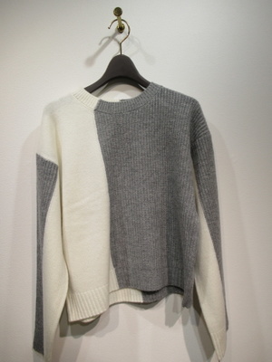 白とグレーの配色 グレーは畦編み