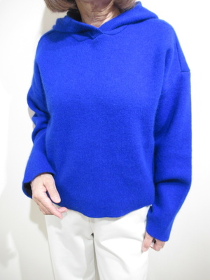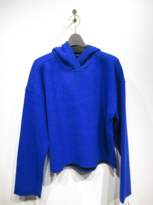 発色のきれいなブルーと裏が黒の配色 フード襟