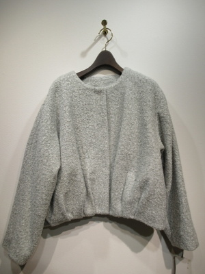襟無し 裾はタックが入ってコクーン 裏地付き 脇ポケット フロントホック