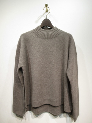 ハイネック ドロップショルダー 裾はフロントアーチ ネック、袖口 裾はリブ編み