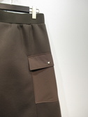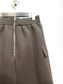 ソフト段ボール生地、カーゴタイプのAラインスカート、裏地なし、ウェストゴム、後ろシルバーのファスナー