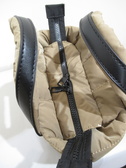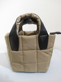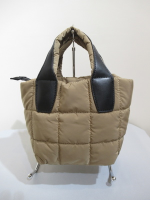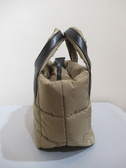 キルティングのコンパクトなバケツ型バッグ、天ファスナー(ダブルジップ)、グログランのショルダーベルト付き