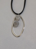 黒い紐のネックレス、パーツがシルバーの楕円とグレー系の樹脂