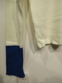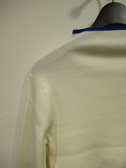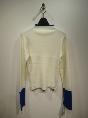 ボトルネック、リブ編みニット、襟ぐりと袖口配色(白はブルー・茶色とグレーは黒)、袖口(内側)に約7cmのスリットあり、手洗い可能、ID:118510と同じ形