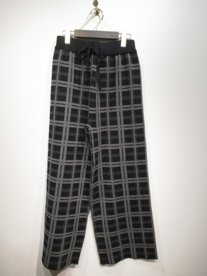レーヨンポリのニットジャージのパンツ ソフトワイドのフルレングス ウエストリブ+紐調整できます。裏地無し手洗い可能 カラーはMGYとBLはチェック柄が同じ CGYはチェック柄が違います(ウエストリブのところは黒です)