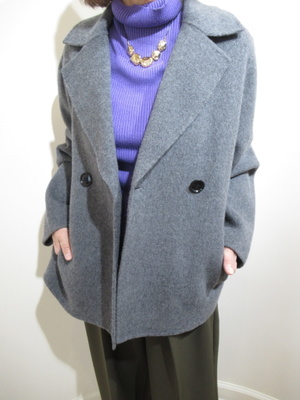 圧縮ウール、ショートPコートジャケット、(ダブルボタン)、裏地無し、フロントポケットあり