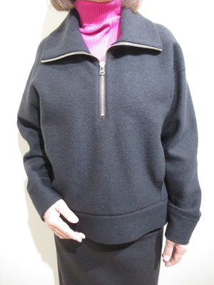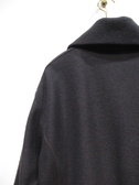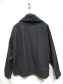 圧縮ウールの若干地厚な素材 大きな襟が特徴 ファスナーあり ドロップショルダーで袖口カフス フロントにポケット DBR表示(若干黒ネイビーが混ざったような色)こちらだけスカートとセット可能