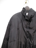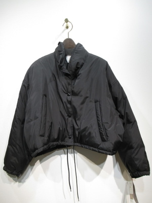 ショートジャケットコート 裾はドロスト ドロップショルダーで袖筒やや広め フロントホック スタンドカラー 中綿はポリエステル 袖口ゴム入り 手洗い可能