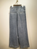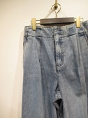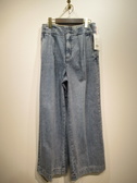 フロントにタック入りのソフトワイドのデニム フロントファスナー有り ウエスト後ろギャザーゴム 手洗い可能