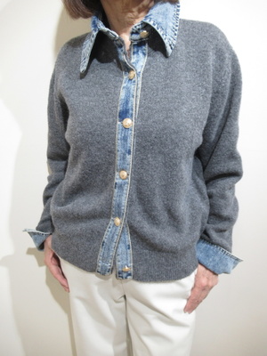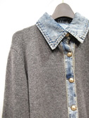 襟 前立て 袖口 3箇所デニム地をドッキング フロントはゴールドのボタン