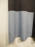 Aラインスカート 裏地あり 横ファスナー ウエスト脇の方にゴム入り 3段切り替え パッチワーク(サックスブルーとダークブラウンの2色配色使い)