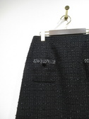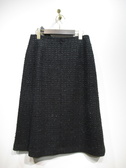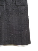 台形スカート、ひざ下丈、生地にシルバー糸を織り交ぜたツイード、裏地あり、後ろファスナー
